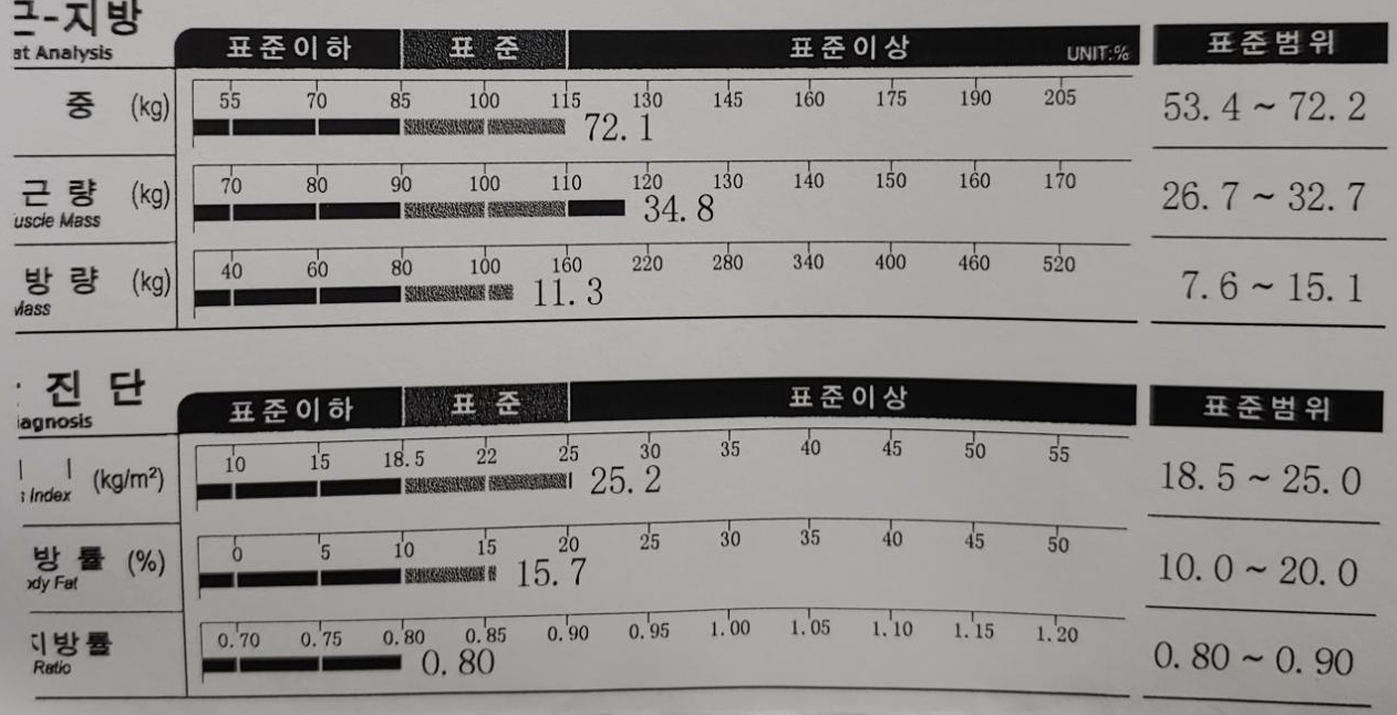 그만큼 조금 위험할 수 있는 상황이지만, 트레이너분이 자주 상태를 체크해주며 거의 데일리로 식단과 운동이 바뀌었습니다. 이 부분은 이후에 자세한 내용을 따로 적겠습니다.